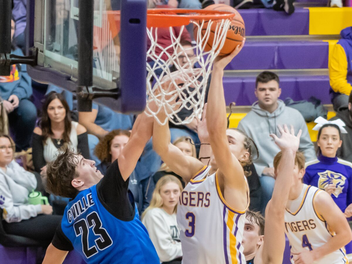 The Monroe Central Golden Bears, a semi-state team last season, traveled to Hagerstown on Saturday, Dec. 20, for a nonconference game with the Hagerstown Tigers in a tournament-type atmosphere. The teams traded the lead eight times and the game was tied eight times. The Tigers led 16-12 after the first quarter. The Bears led 34-28 […]
