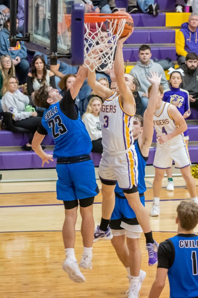 In the early minutes of the third quarter, the Bulldogs expanded their lead to double figures when Landyn Keiser scored on a rebound basket and Shea Hollendonner scored off a steal to give Centerville a 28-18 lead. At a critical juncture of the game, the Tigers responded with a three-pointer from Howard and four consecutive free throws from Troutwine to cut their deficit to three at 28-25.