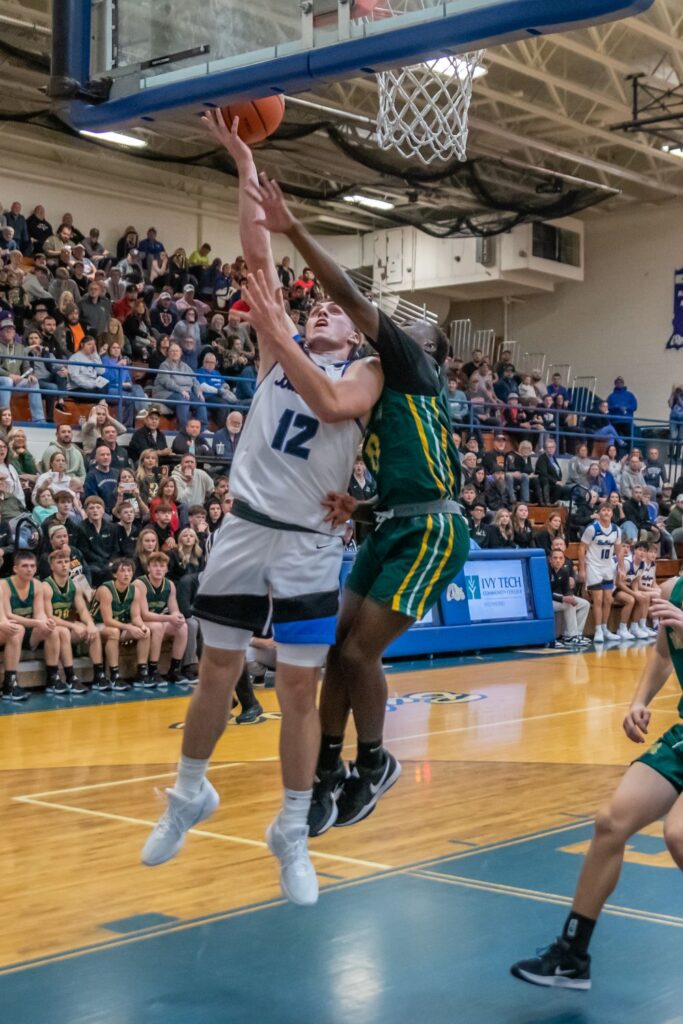 Shea Hollendonner led the Bulldogs and all game scorers with 28 points. Landyn Keiser scored 12 points and Bryson Brown added 11 points. Noah DuVall led the Knights with 11 points.