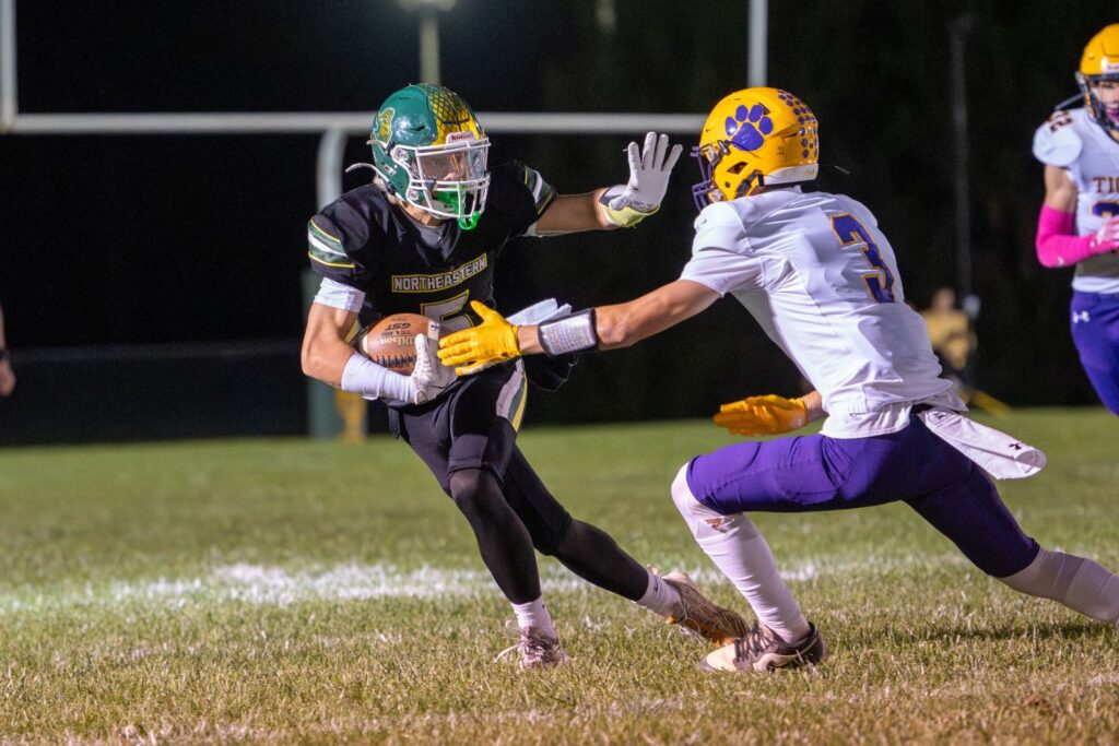 Northeastern head coach Wes Oler reflected on the game and the season. “We were a little frustrated on defense as the game wore on,” Oler said. ”The two huge red-zone stops in the third quarter to keep them out of the end zone changed everything. We gained confidence and hit a home-run pass. From there, momentum shifted completely to us. When we get a lead, we have to be able to run the ball and we did. I am proud of our seniors; 16 straight conference wins is hard to do in any conference. We told our kids all week not to overlook Hagerstown. They may be young, but they are well coached and have a lot of pride.”