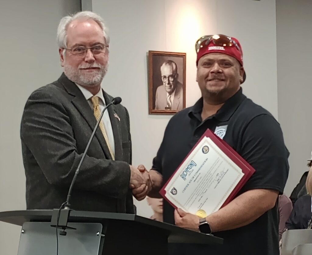 During Richmond Common Council’s Feb. 18 meeting, those individuals were honored for their efforts to rescue and save a suicidal person who had become impaled on safety fencing along the South G Street bridge. Each received a certificate.
