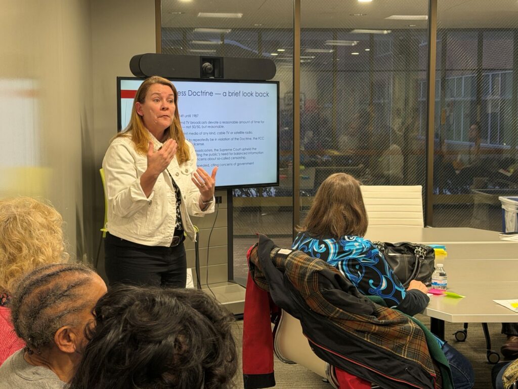 Fifty-five people participated in lively discussions about what is protected under the First Amendment and how news media have interpreted speech throughout history.
