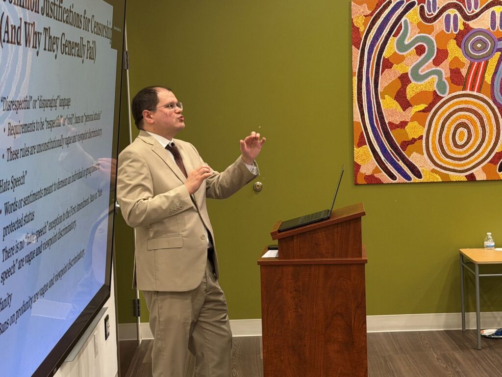 The topic was freedom of speech, with Free Press Indiana’s Lisa Renze and Foundation for Individual Rights and Expression’s Brennen VanderVeen as facilitators. Kelley Cruse-Nicholson returned to serve as the event moderator.