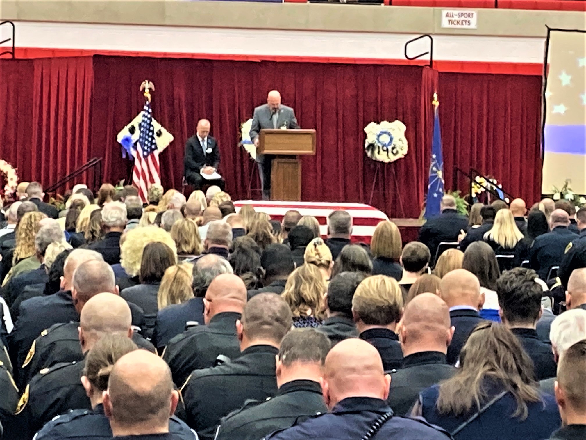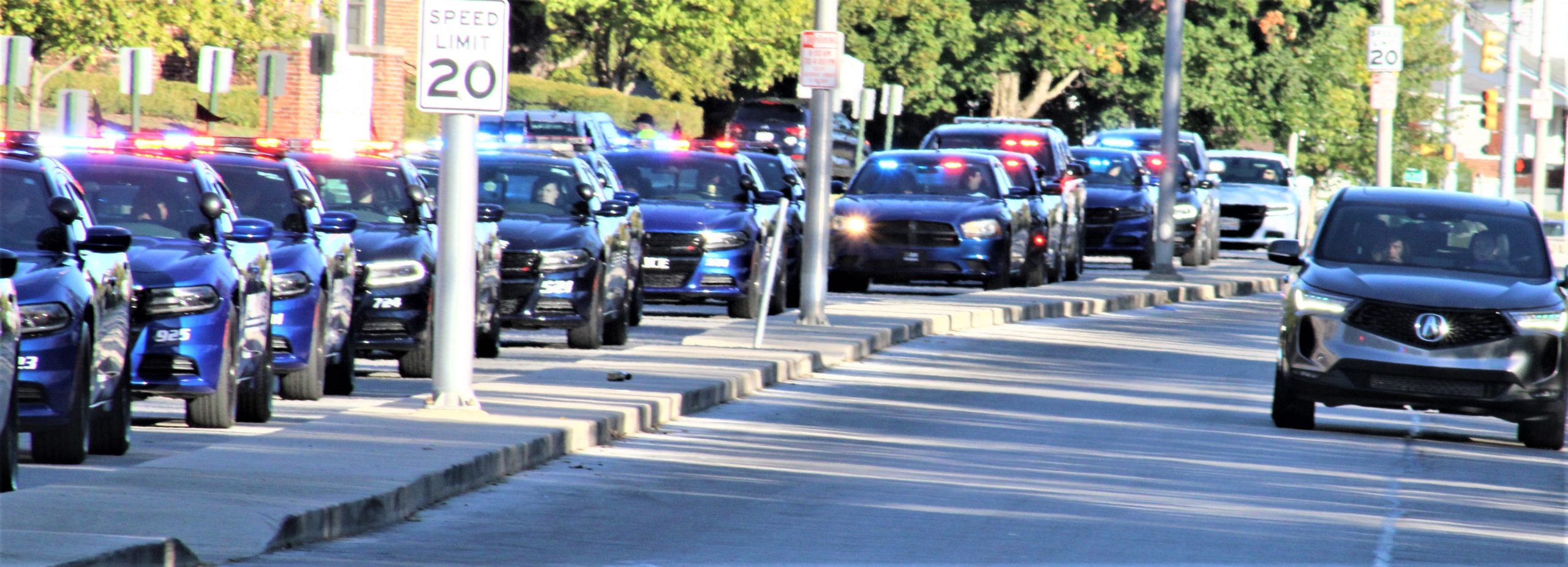 Richmond Police Department officers gather for the procession toward Crown Hill Cemetery in Indianapolis for K-9 Officer Seara Burton’s burial. Photo by Bob Hansen