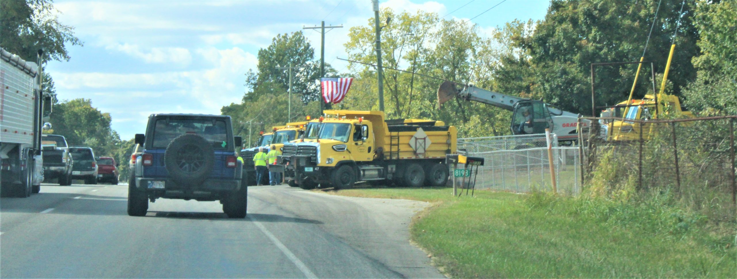 Wayne County Highway Department crews salute RPD K9 Officer Seara Burton with a flag.