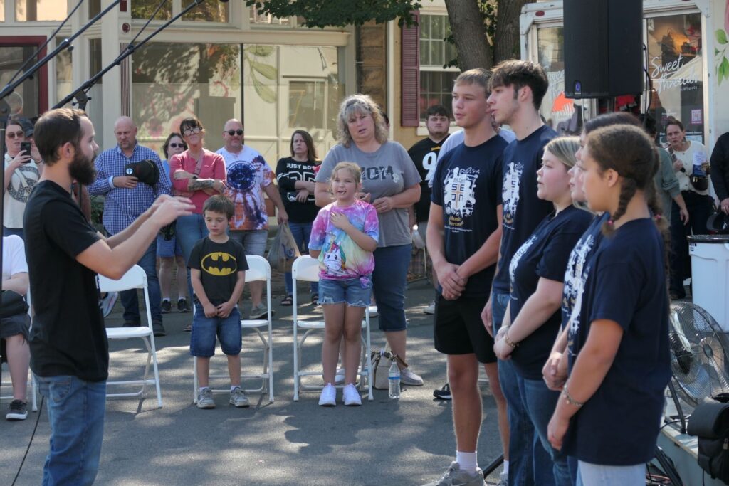 Student singers from Seton Catholic High School sing the national anthem on Saturday, Oct. 4, 2025 at the 4th Street Fair. Photos by Chris Hardie