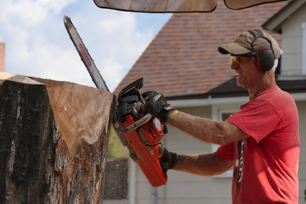 Dayle Lewis demonstrates his tree carving skills during the 4th Street Fair on Oct. 24, 2025. Photos by Chris Hardie