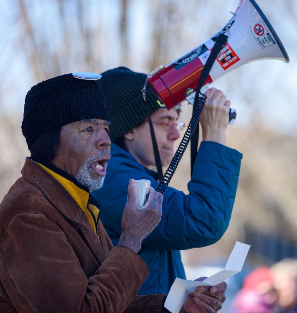 After a program of speakers, participants marched peacefully through downtown Richmond and stood along North A Street.