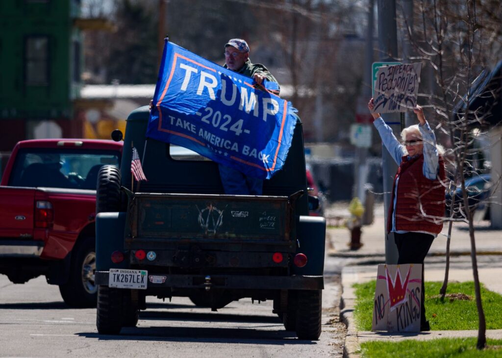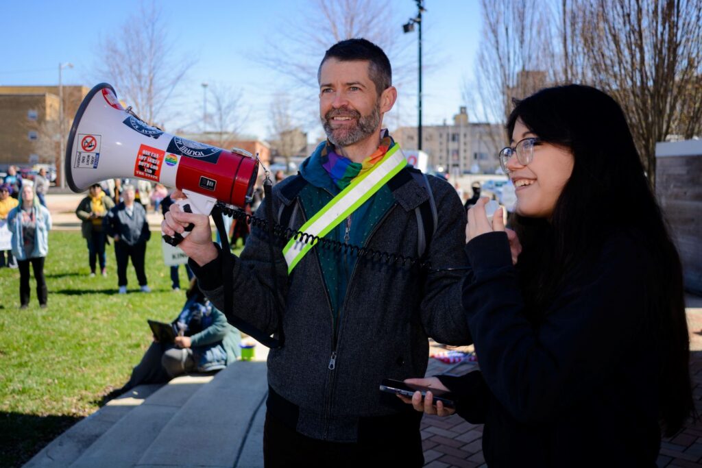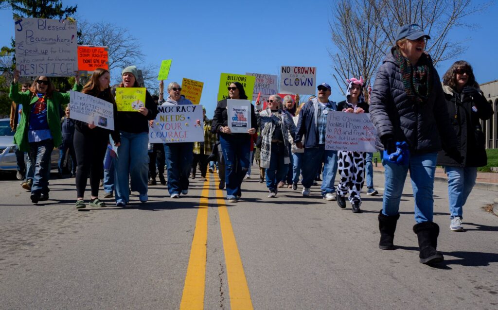 Residents gathered Saturday, March 28, at Elstro Plaza in Richmond for a No Kings rally and march that coincided with similar events nationwide. After a program of speakers, participants marched peacefully through downtown Richmond and stood along North A Street. Photos by Joshua Smith