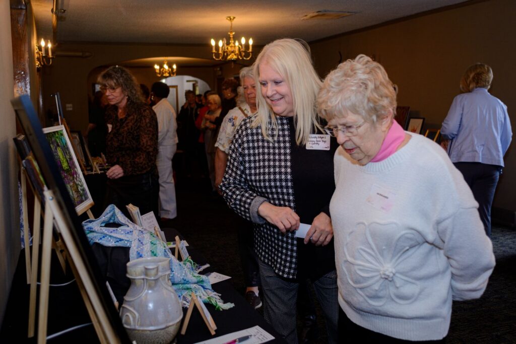 Guests view donated artwork before placing bids during the Women’s Fund of the Wayne County Foundation Annual Luncheon and Art Auction Saturday, March 14, 2026, at Forest Hills Country Club in Richmond, Ind.