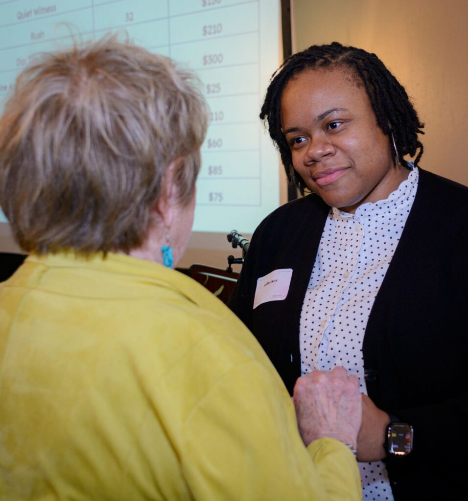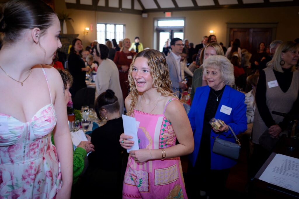 Gabby Smith thanks Mary Jo Clark after receiving a grant for the Richmond High School girls basketball team during the Women’s Fund of the Wayne County Foundation Annual Luncheon and Art Auction Saturday, March 14, 2026, at Forest Hills Country Club in Richmond, Ind.