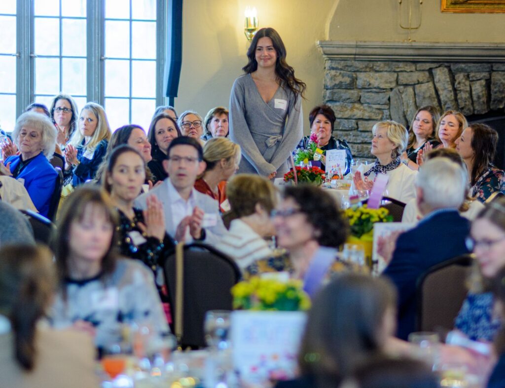 Maren Bolser stands to accept a grant for her girls basketball camp during the Women’s Fund of the Wayne County Foundation Annual Luncheon and Art Auction Saturday, March 14, 2026, at Forest Hills Country Club in Richmond, Ind.
