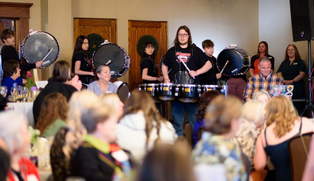 Members of the Richmond High School Drumline help guests celebrate the Women’s Fund of the Wayne County Foundation giving away $500,000 during their Annual Luncheon and Art Auction Saturday, March 14, 2026, at Forest Hills Country Club in Richmond, Ind.