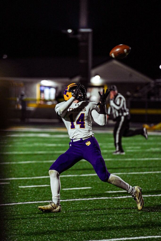 The Tigers started to fight back. Graham Vinson threw a 10-yard touchdown pass to Isaac Schmitz with 9:05 remaining in the second quarter. Cale Schmitz added the PAT to make the score 20-7.