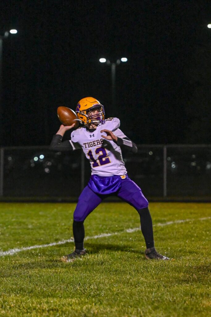 Entering the final period, both veteran coaches went back to the drawing board looking for a play that could break the tie. The Tigers finally put points on the scoreboard with 10:58 remaining in the fourth quarter on a 25-yard pass from Arlin Berger to Isaac Schmitz. Cale Schmitz booted the extra point to extend the lead to 7-0.