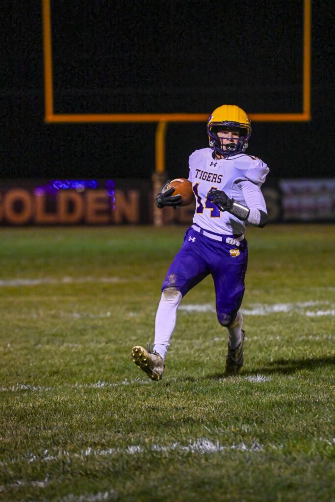 Hagerstown executed its first big-gain play late in the third quarter when Isaac Schmitz connected with Jaxon Hale on a 41-yard halfback pass to the 18-yard line, but the Tigers lost yards on the next three plays and turned the ball over on downs.